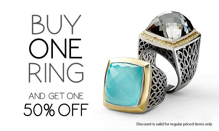 Buy One Ring and Get One 50% OFF ONE WEEK ONLY – thru February 23rd discount is valid with regular priced items…