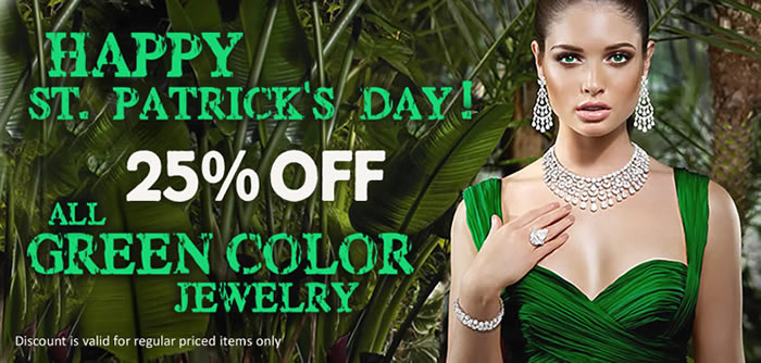 Happy St. Patrick’s Day!!! All Green Color Jewelry 25% OFF Over 2055 Unique Jewelry Designs on SALE ONE WEEK ONLY – thru…