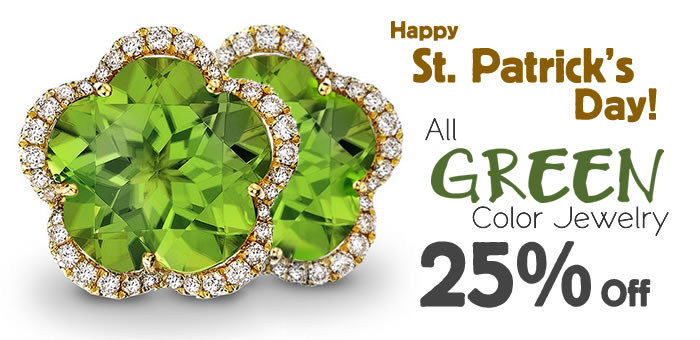 Happy St. Patrick’s Day!25% OFF All Green Color Jewelry!Over 1700 unique jewelry designs on SALE ONE WEEK ONLY thru March 18th Do…